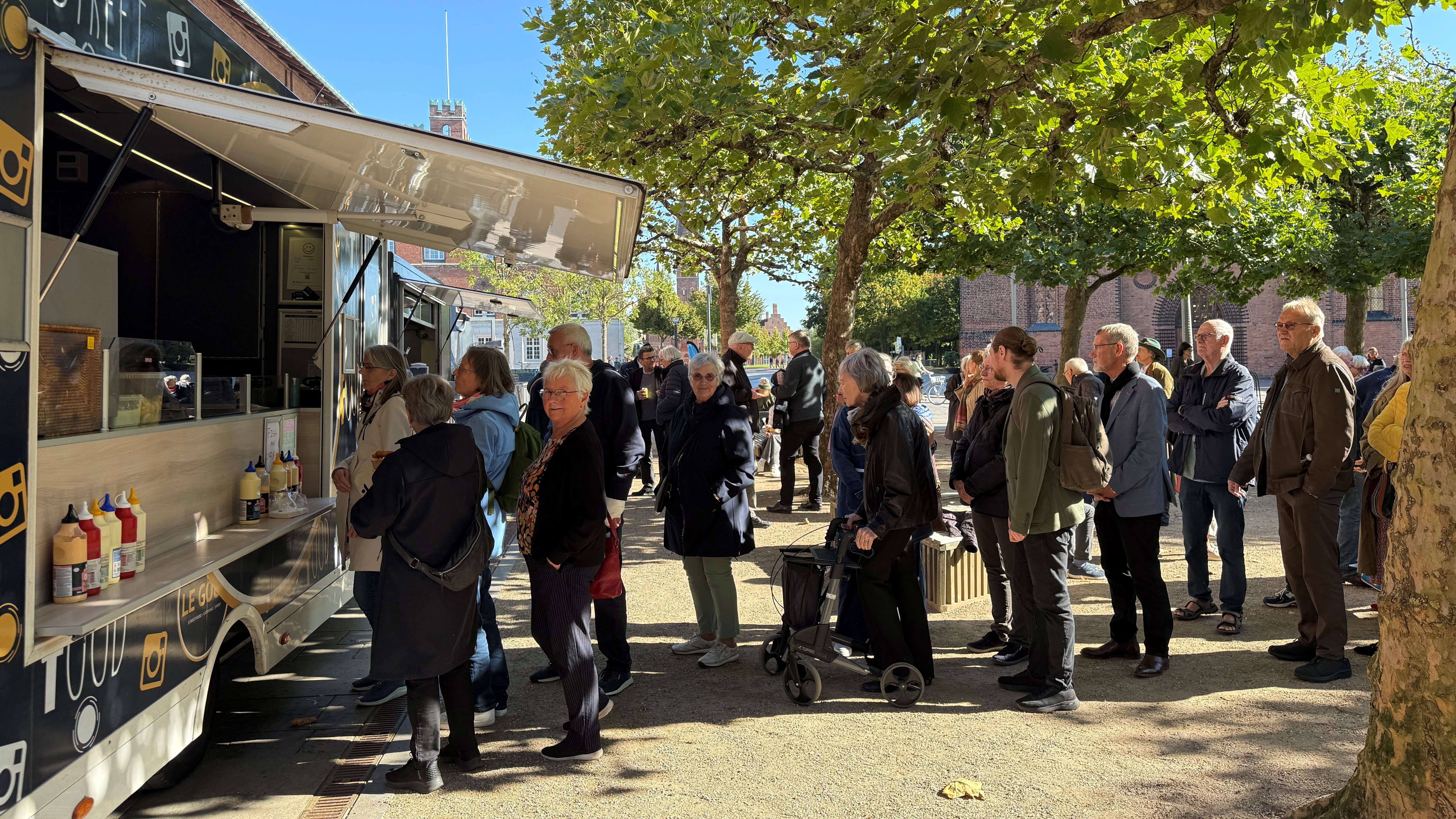 De godt 200 gæster stod tålmodigt i frokost-kø, hvor der blev serveret forskellige slags streetfood.