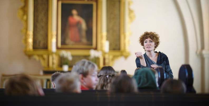 Hvordan formidler vi det særlige ved kirkerummet til børn og unge? Inspireret af Dorthe Jørgensens tænkning vil vi følsomt iagttagende, med nærvær og eftertanke, forsøge at nærme os det særlige i undersøgelsen af rummets materialitet, funktion og atmosfære. Vi skal se med fingrene, formgive, lytte og træde ind og ud på nye måder for på den måde at skabe muligheder for, at børn og unge kan gøre sig genuine erfaringer med kirkerummet.