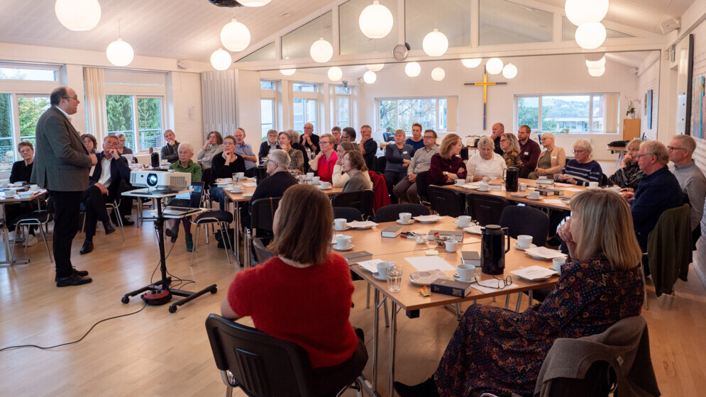 Denne mandag aften i Hadsund er omkring 50 dedikerede og handlekraftige præster og medlemmer af menighedsråd og provstiudvalg fra lokalområdet mødt op. De har sat sig sammen for at tale om, hvordan man i stiftet skal tage hånd om de udfordringer, som fremskrivninger viser, at folkekirken møder i fremtiden.