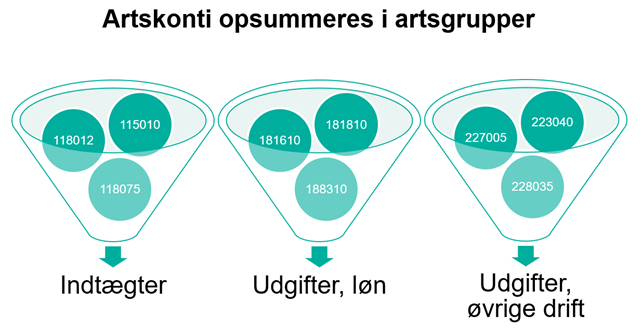 Alle artskonti summerer altså op i en af de tre artsgrupper.